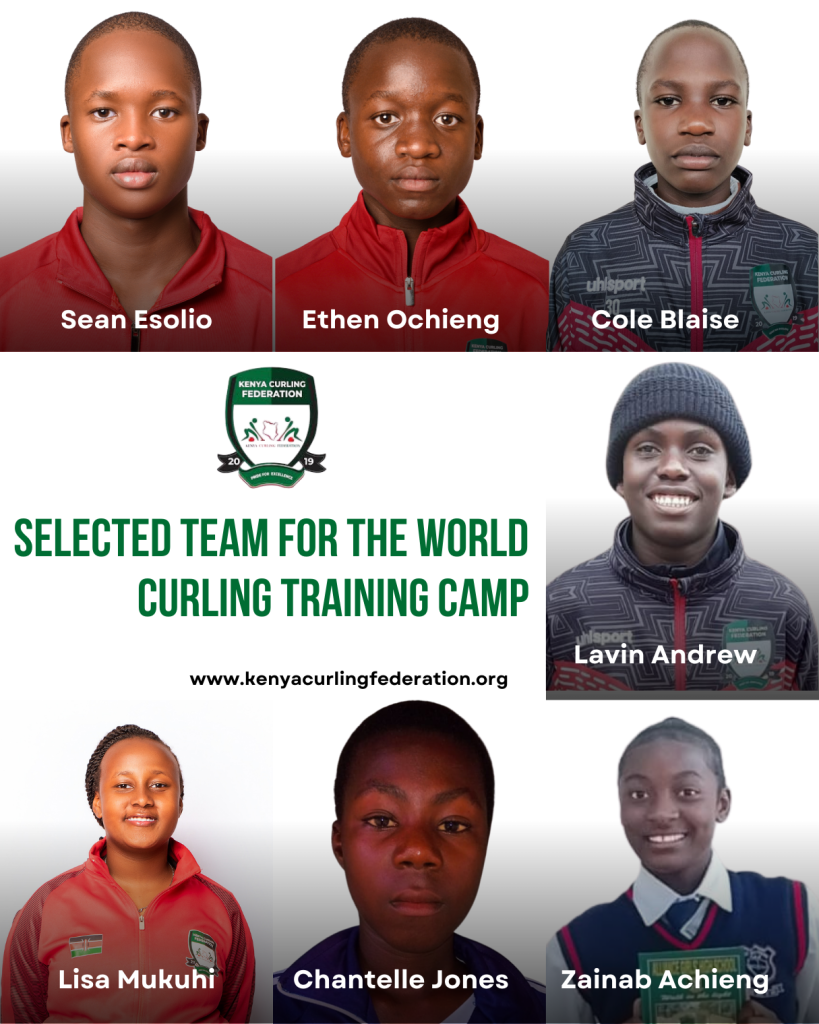 The Kenya Curling Federation (KCF) is proud to announce that Lisa Mukuhi, Chantelle Jones Tiellen, Zainab Achieng Ibrahim, Sean Esolio, Ethen Ochieng Omondi, Lavin Andrew Kimathi, and Cole Blaise Awuonda have been officially selected to represent the Kenya National Curling Team at the World Curling Training Camp scheduled for August 2026 in Norway.